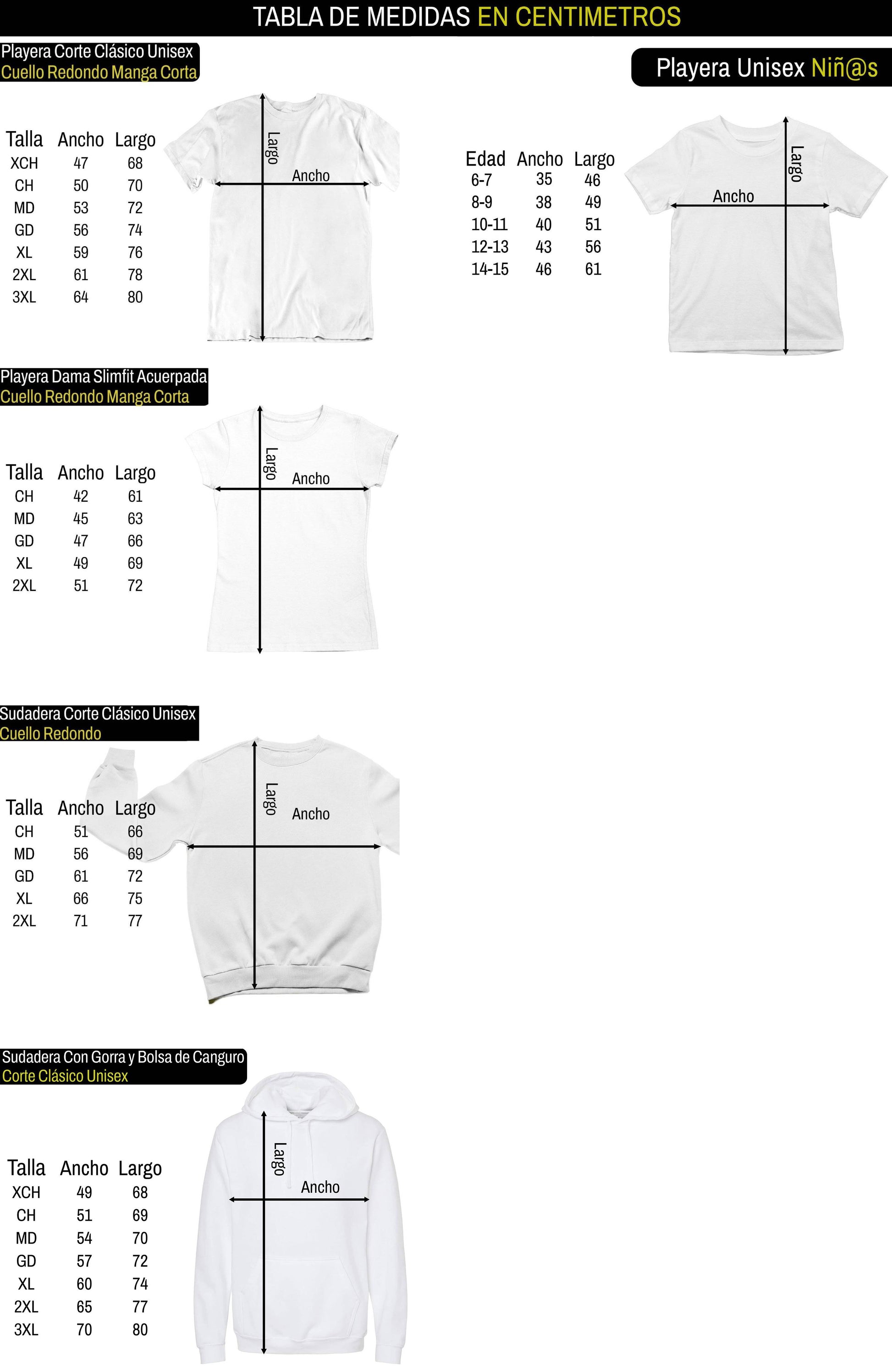 Sudadera Corte Clásico Unisex: Ofrece 2"-3" extra de perímetro de pecho, mangas mas largas y amplias. Es el corte clásico es perfecto para estar súper cómod@. Esta es la que se usa comúnmente para hombre, pero también luce perfecto en mujer.